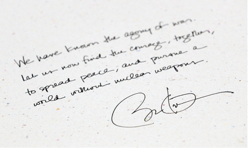 “We have known the agony of war. Let us know find the courage, together, to spread peace, and pursue a world without nuclear weapons.”