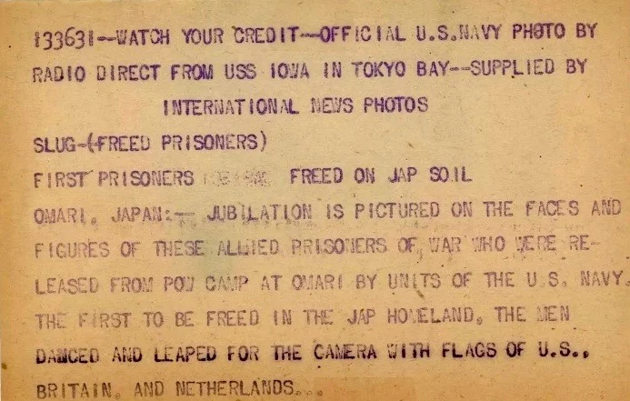 “We rounded a turn in the channel and were immediately besieged by a hundred clasping hands and arms. They continued to cheer and yell and shake our hands and clap us on the back and fall on us in tear-soaked embraces...After the first initial pictures I took from our boat of the PWs cheering and waving with the American, British, and Dutch flag on high, I wasn’t able to take any for another ten minutes...I know it can never show what we saw and felt.”