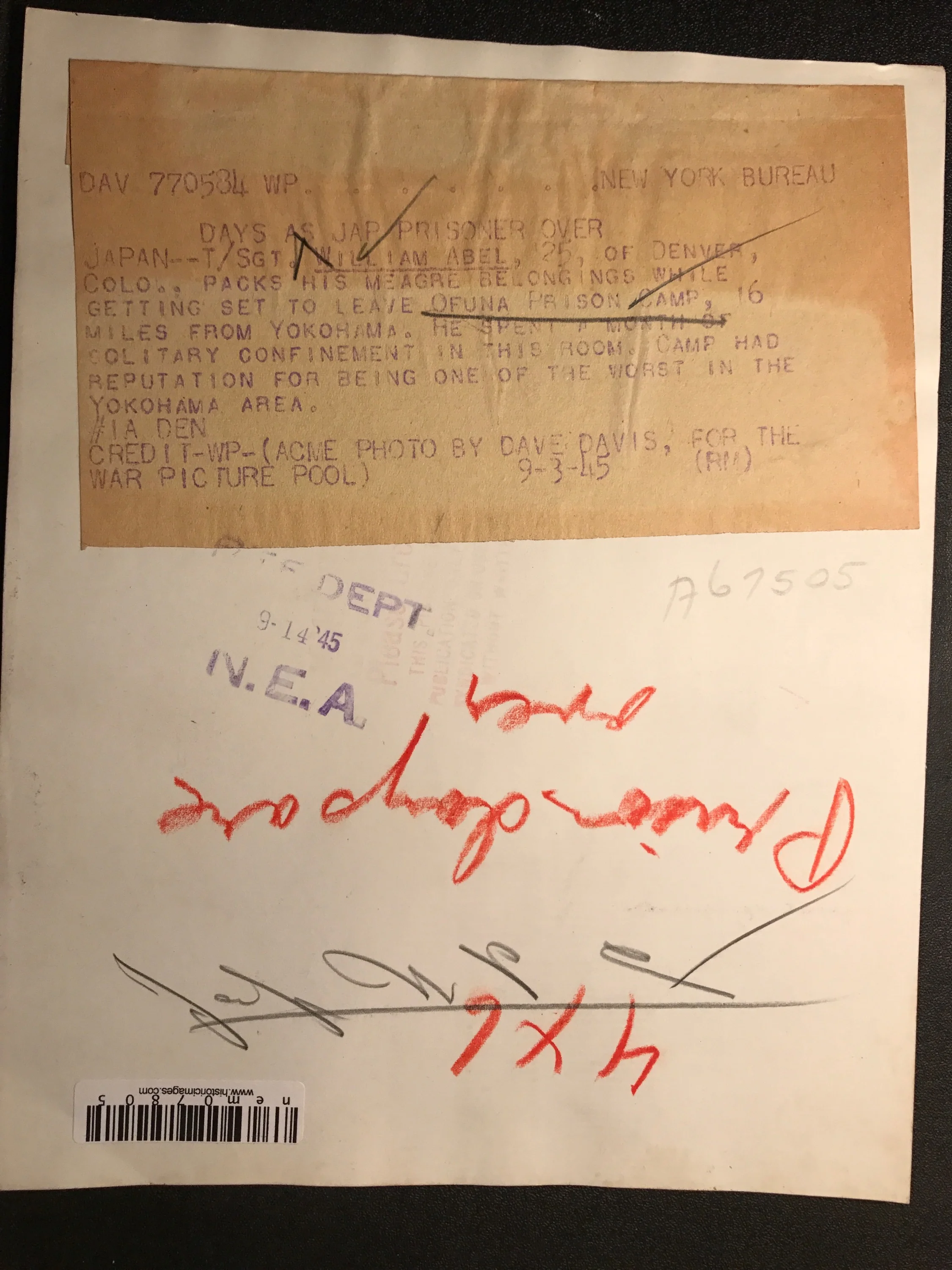 Bill Abel during his release from Ofuna Navy interrogation center, near Yokohama.